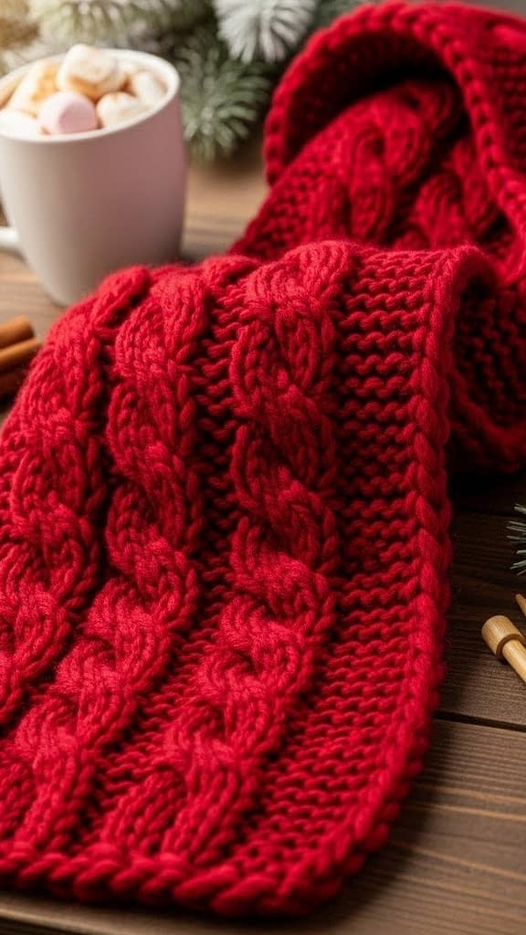 The finished result is a warm, chunky scarf with deep textures that feel luxurious and inviting, perfect for winter gifting.