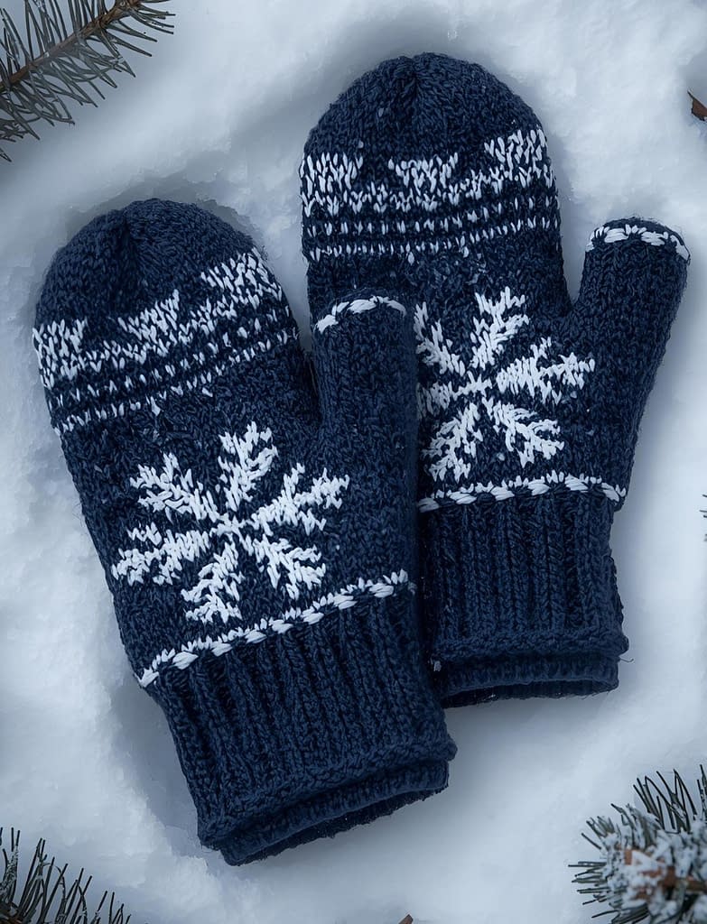 Inspired by the crisp winter scene of navy and white snowflake-pattern mittens resting on fresh snow, this pattern combines traditional stranded colorwork with structured shaping for a perfect winter accessory.