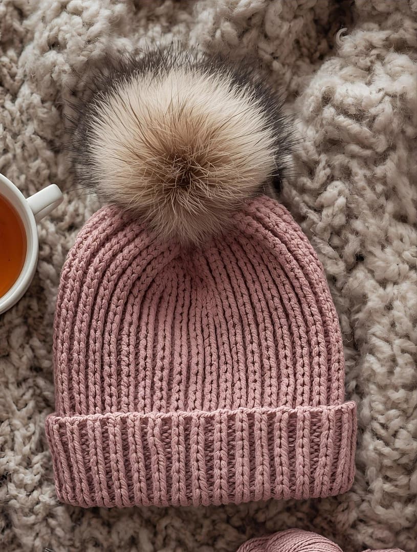 Cozy Ribbed Beanie With Faux Fur Pom-Pom