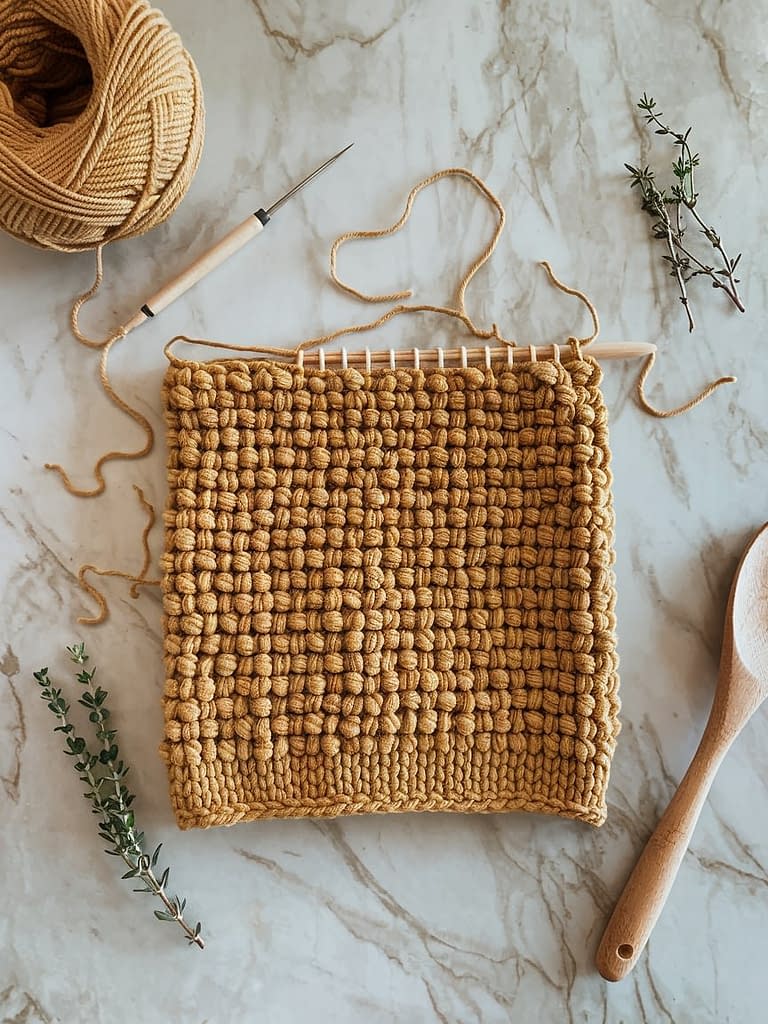 Seed stitch is created by alternating knit and purl stitches across rows. It gives a textured, bumpy surface that’s perfect for scrubbing. The key is to always “knit the purls and purl the knits” from the row below.