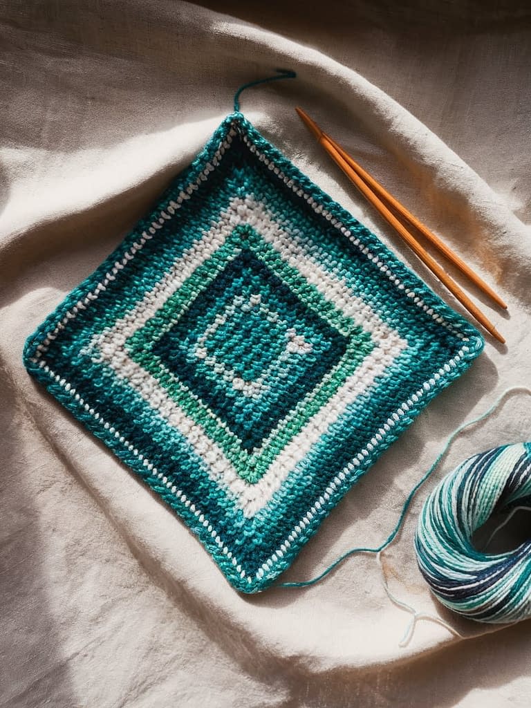 Finished Size: About 8″ × 8″ (adjustable by cast-on stitches)