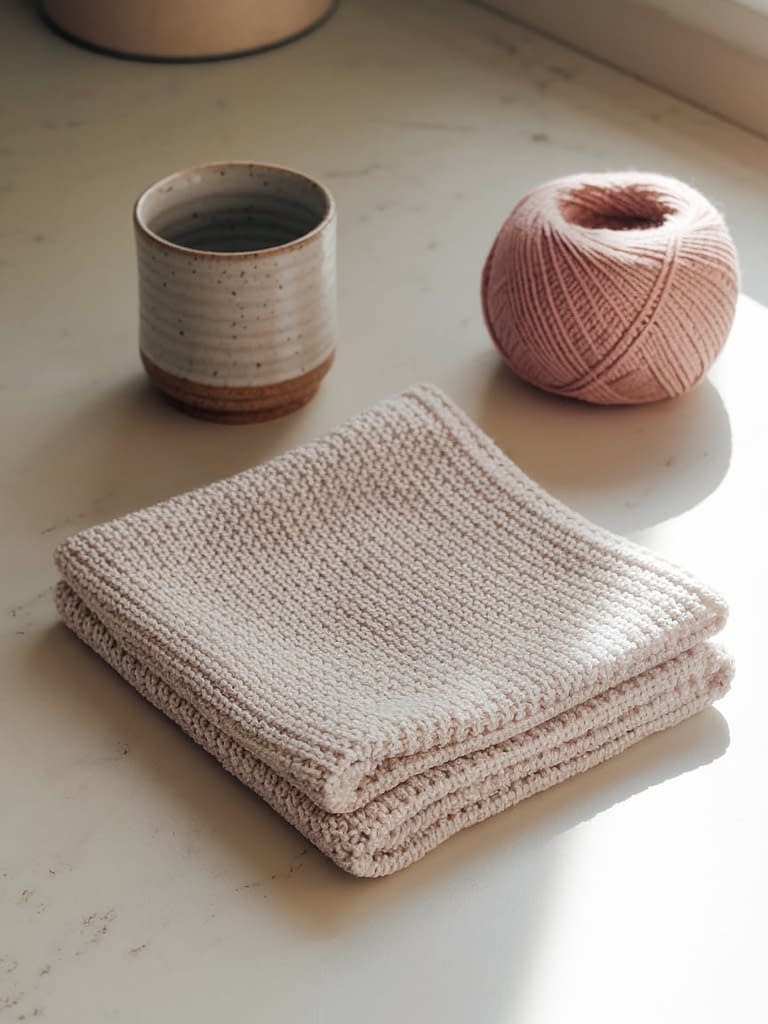 3. Bind Off: When the dishcloth is square, bind off all stitches loosely to avoid curling edges.