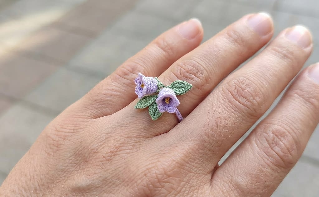 These 6 crocheted ring patterns show how something very small can still carry a lot of detail, creativity, and personality. From the soft lavender flowers to the clean leaf design and the delicate pink blossom, each ring offers a different style while using the same basic crochet techniques.