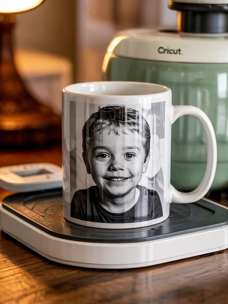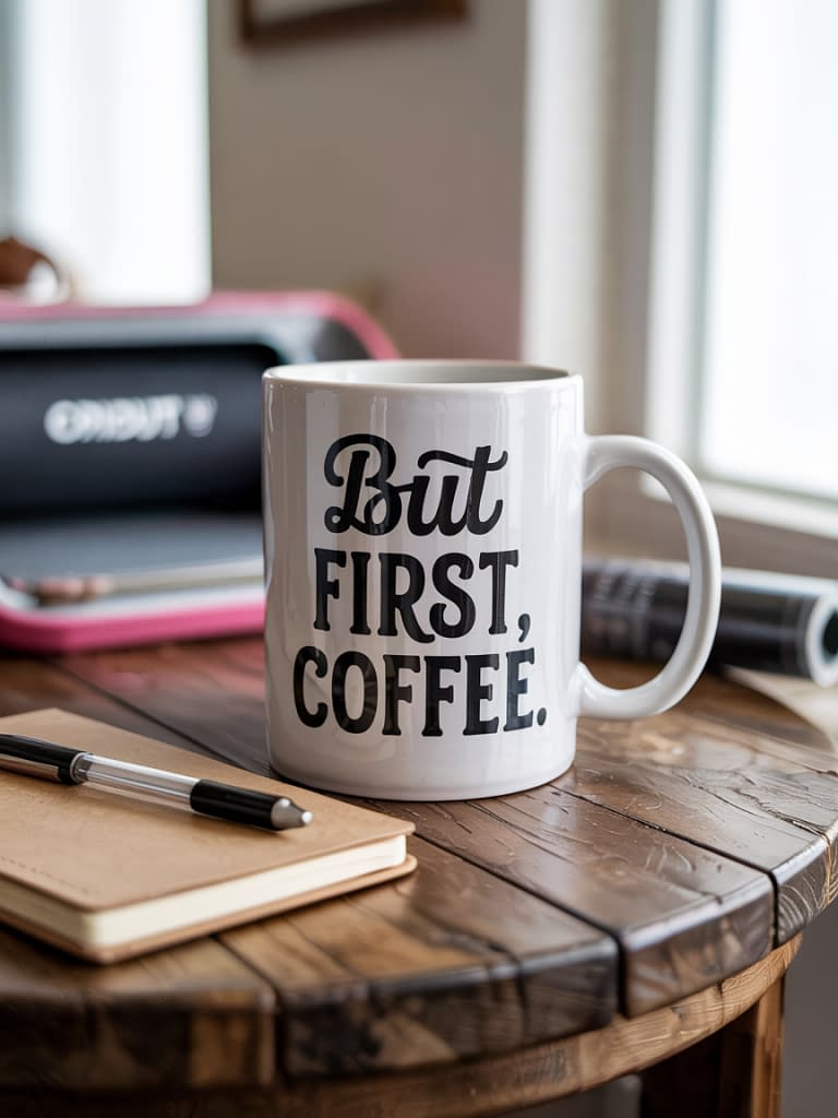 2. Choose Material – For long-lasting professional results, use Infusible Ink with a sublimation mug. For quick projects, permanent vinyl works too.