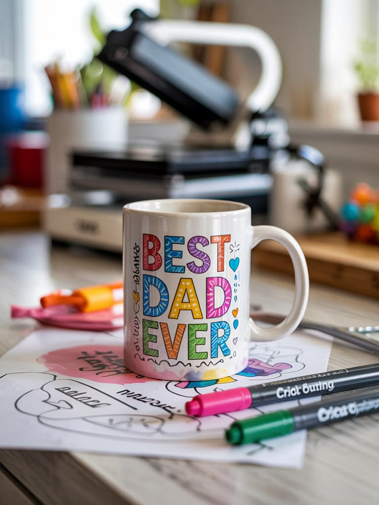 1. Write or Draw – Use Cricut Pens to draw directly on laser copy paper. You can freehand messages like “Best Dad Ever” or let kids doodle.