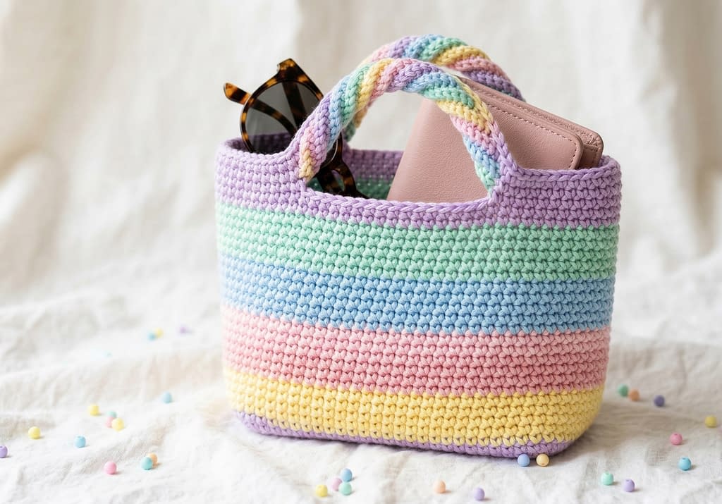 Tutorial 5: Pastel Striped Crochet Mini Tote Bag