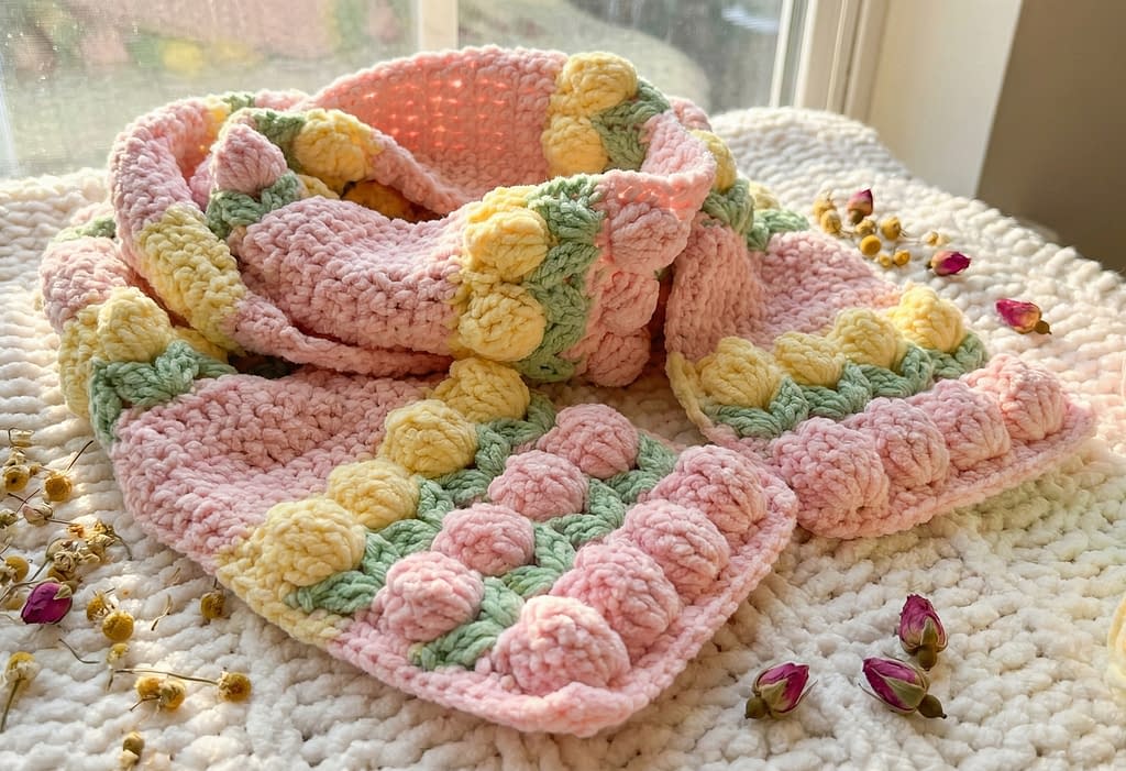 The 7 Crochet Tulip Stitch Scarf Patterns collection demonstrates just how versatile and expressive the tulip stitch can be. From elegant fairycore designs to playful bubble textures and soft rainbow transitions, each pattern offers a unique approach while remaining beginner-friendly and clearly structured. By working through these tutorials, you not only create beautiful scarves but also build confidence in textured crochet, color control, and finishing techniques. Whether you crochet one design or all seven, these tulip stitch scarves are timeless pieces that highlight the beauty of handmade craftsmanship.