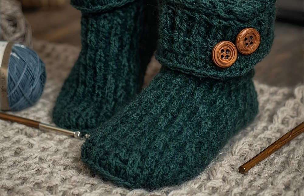 4. Chunky Boot-Style Crochet Slippers