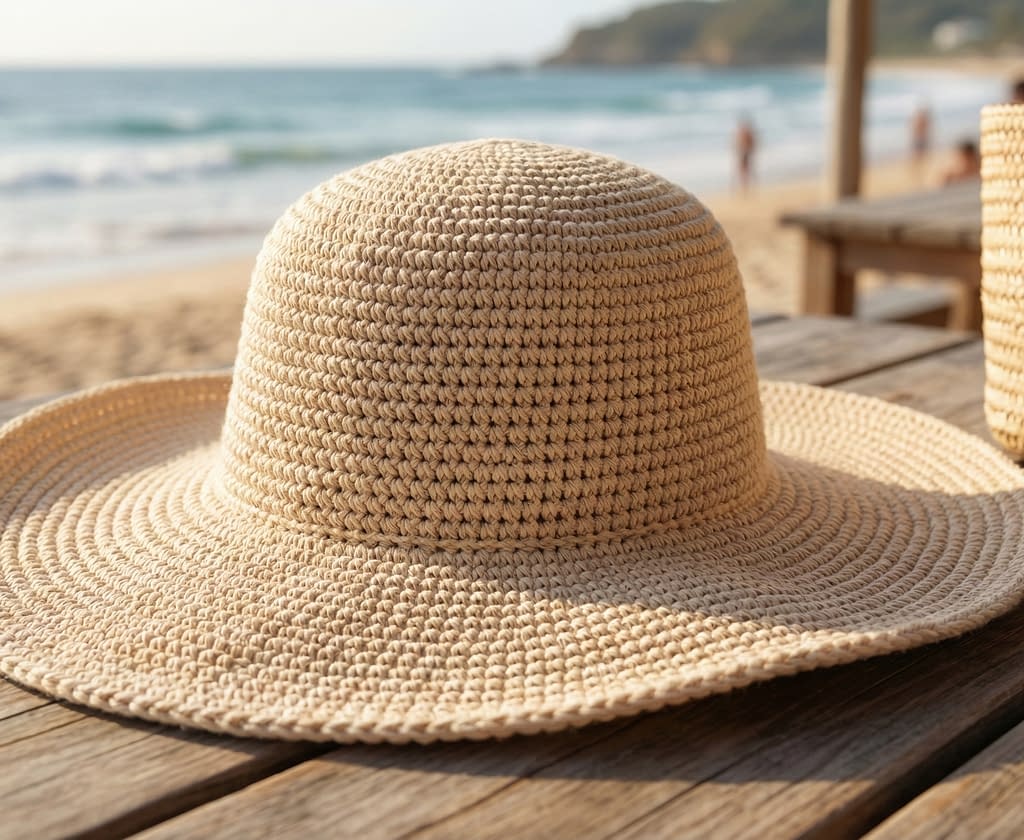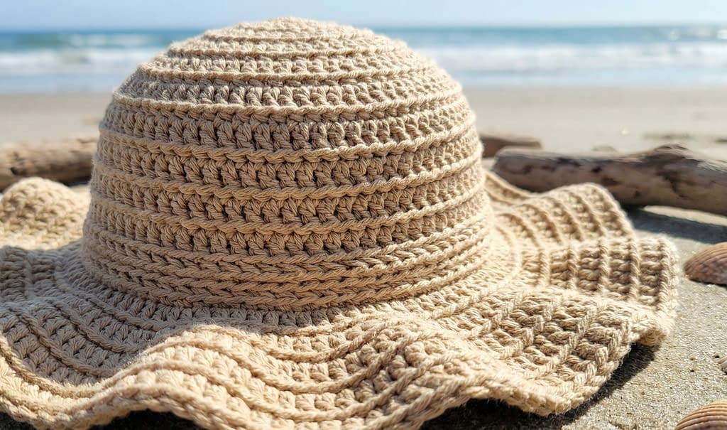 3. Beach-Ready Crochet Sun Hat with Textured Brim
