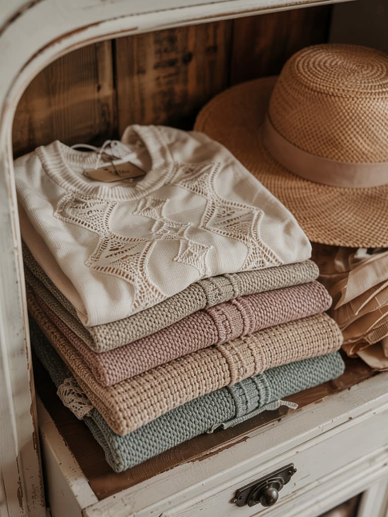 - Keep the palette soft: creams, pastels, sage greens, and dusty roses.