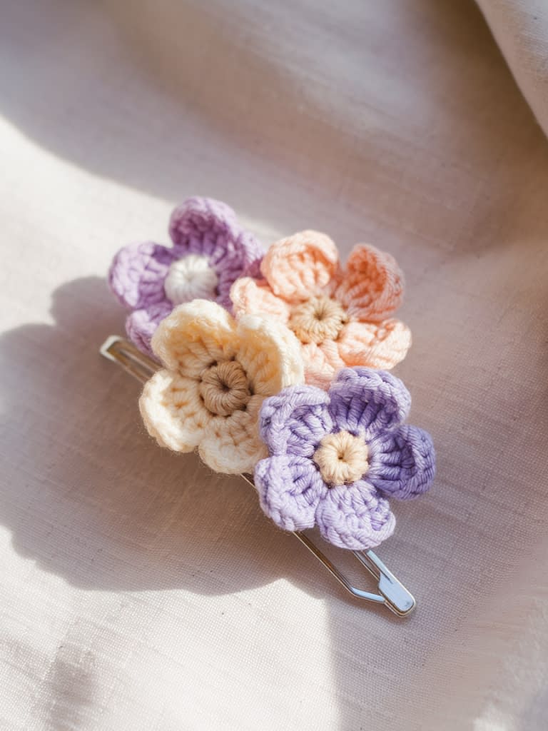 Before we begin, gather your favorite small skeins of yarn, a few metal hair clips, and a 3.0 mm to 4.0 mm crochet hook — and get ready to create a collection of charming, handmade accessories that you can proudly wear or gift.