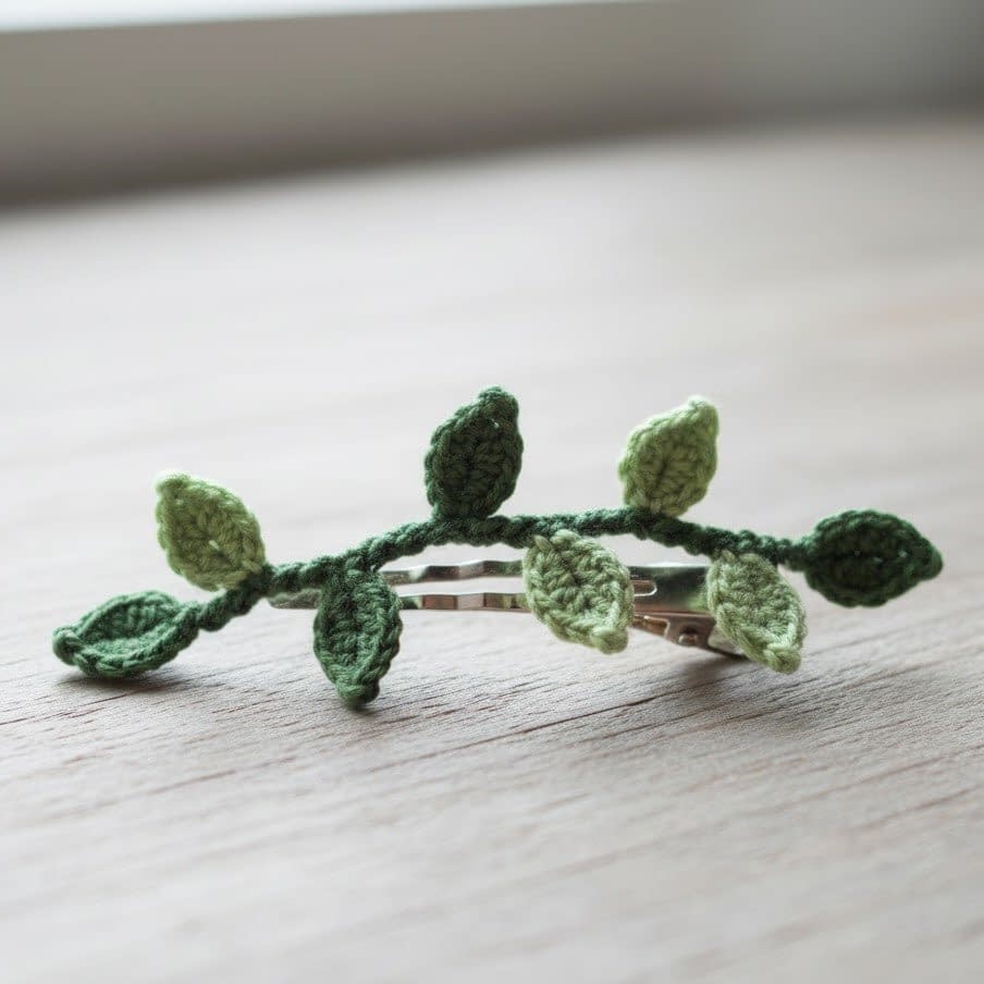 Pattern 7: Mini Crochet Leaf and Vine Hair Clip