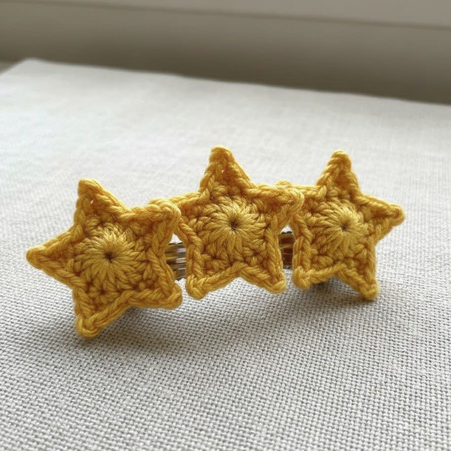- Crochet multiple stars and line them across a longer barrette for a celestial look.
