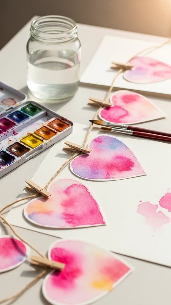 Watercolor hearts allow soft blends and artistic variations. This garland looks hand-painted and elegant.
