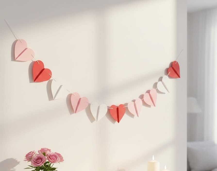 In this post, we’ll walk through six paper heart garland tutorials, each offering a different style, structure, and creative approach. These include classic folded hearts, layered 3D designs, origami hearts, looped hearts, soft watercolor hearts, and vintage book-page hearts. Every section contains clear measurements, details on folding angles, tips for achieving clean cuts, instructions on where and how to apply glue, and suggestions for how to display your finished garland beautifully.