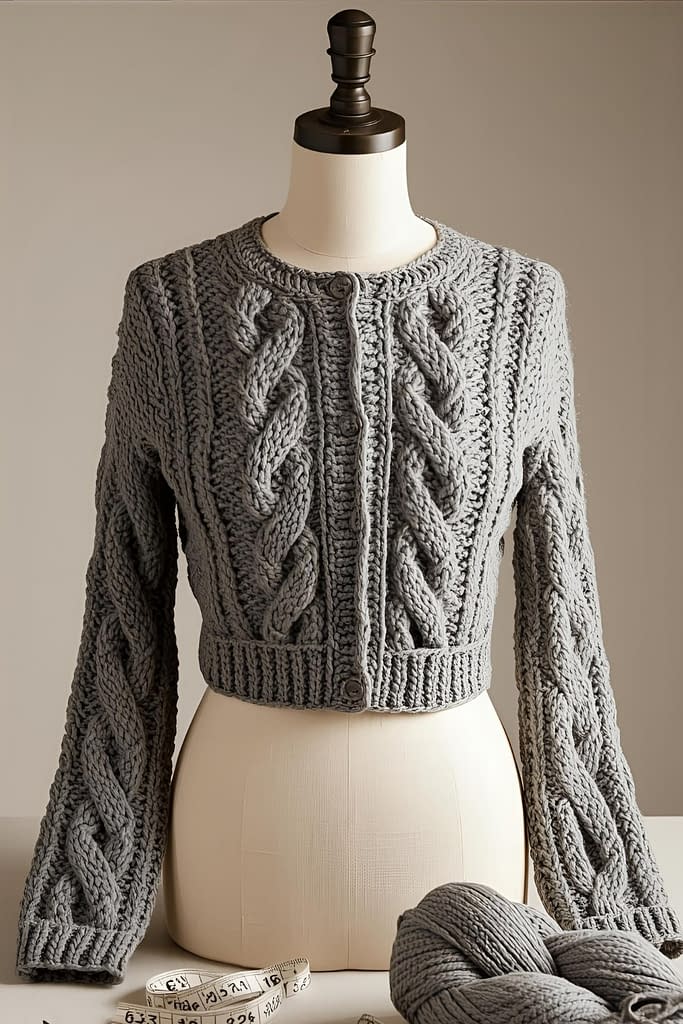 8. Textured Cable Stitch Crop Cardigan Pattern
