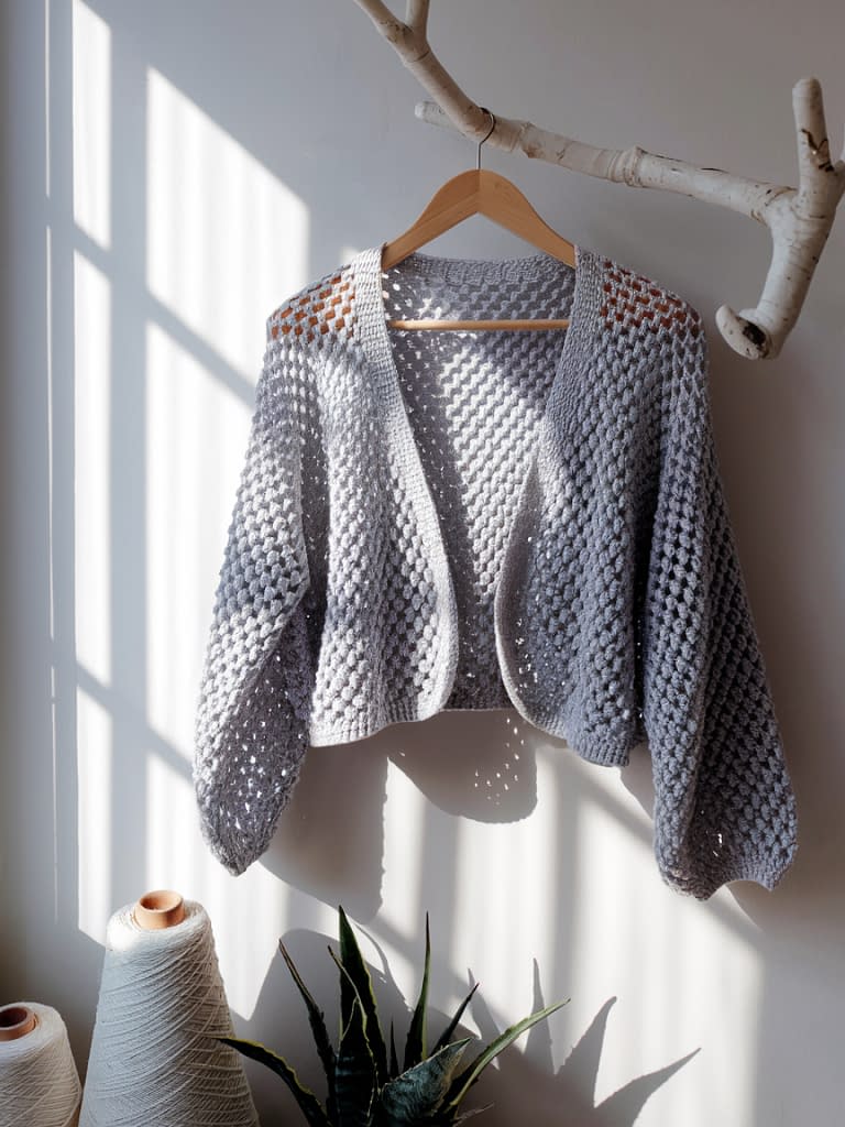 6. Modern Mesh Stitch Crop Cardigan Pattern
