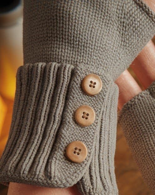 These gloves feature a buttoned flap design on the wrist, giving them a stylish and customizable finish. They’re knit flat with a built-in button band.