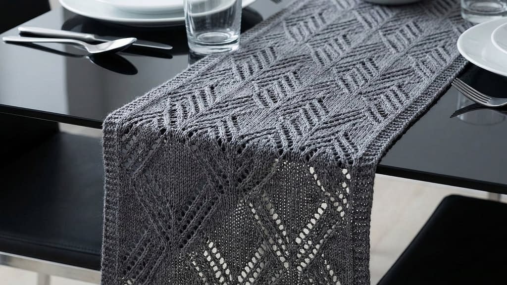Bind off firmly in pattern. Weave in all ends. For the modern look, when you block this runner, use wires or a ruler to ensure the edges are perfectly straight and the diamonds are symmetrical. The shadows cast by these precise holes on a glass table are stunning.