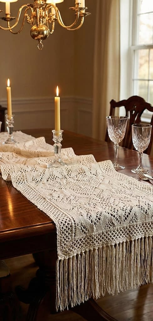 2. Vintage-Inspired Cream Lace Knit Table Runner