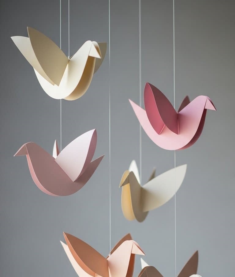 This hanging paper bird mobile is an elegant craft that turns simple paper into a lightweight, airy decoration. It focuses on cutting precise bird silhouettes, suspending them with transparent thread, and creating a balanced vertical display. This project is ideal for beginners who enjoy both cutting and assembly crafts.