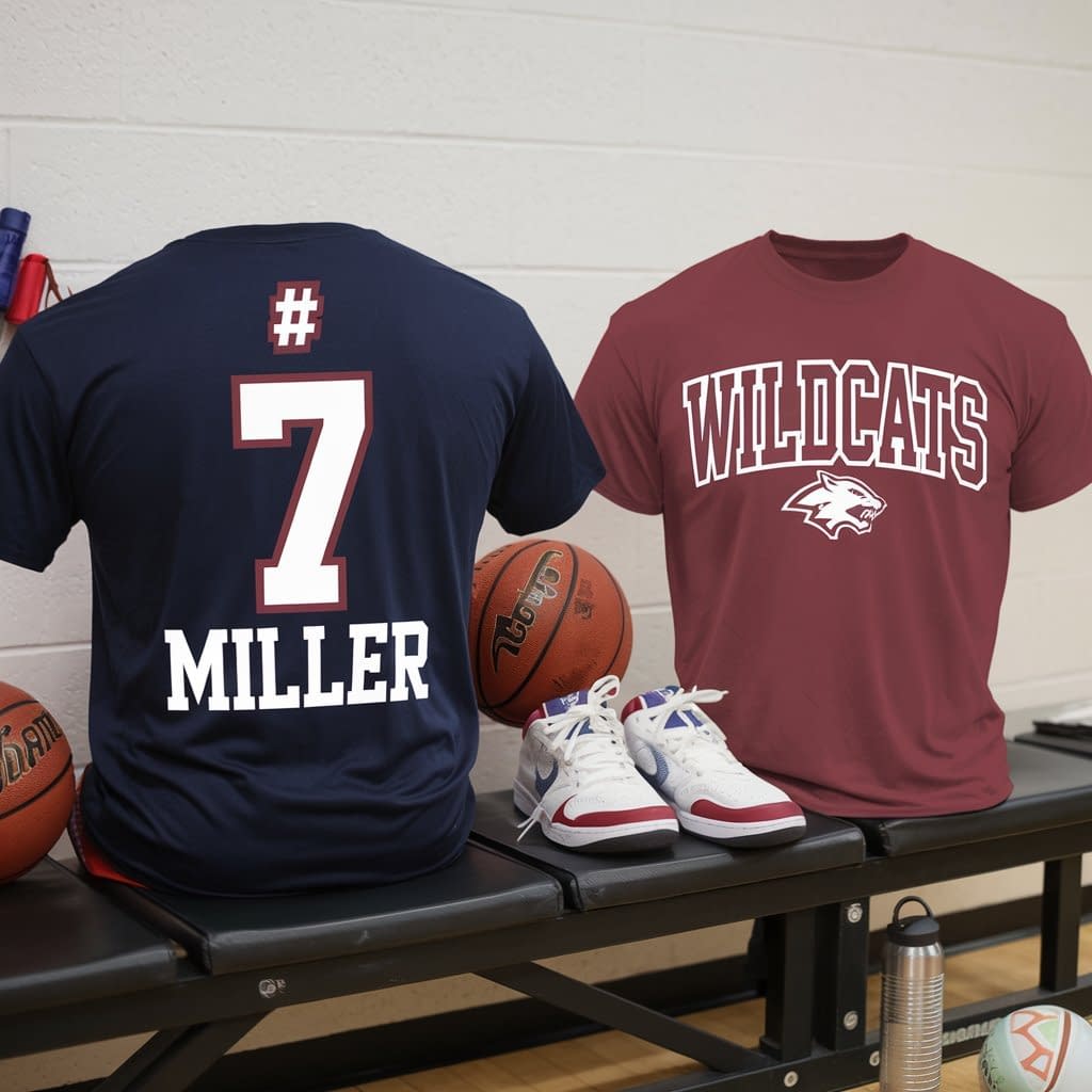 Example: Back: “#7 Miller,” Front: “Wildcats.”