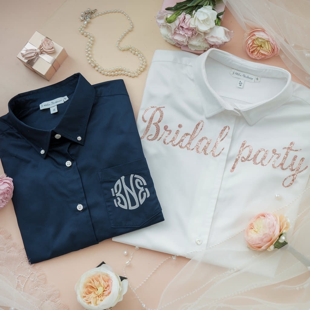 Elegant and timeless, monogram shirts are perfect for gifts or bridal parties.