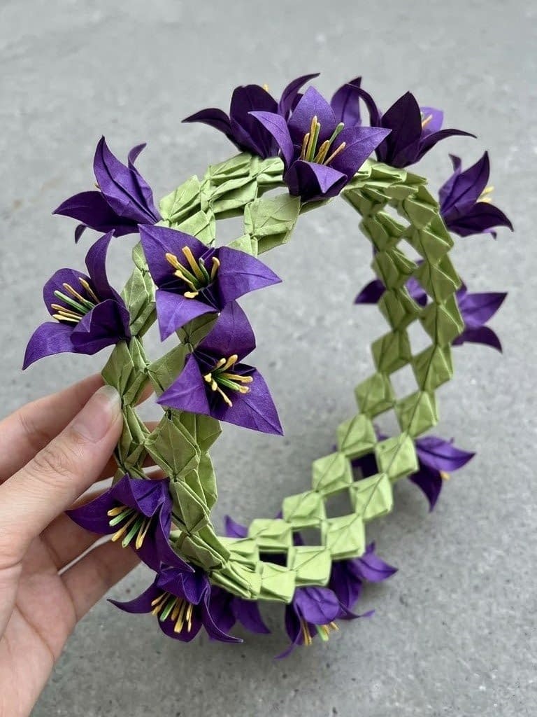 Paper Flower Crown 5: Purple Origami Flower Crown with Lattice Base